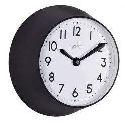 The Acctim Wixham Wall Clock in Black features a deep painted metal case, glass lens and quartz movement. The perfect wall clock for those wanting to add a touch of retro to their interiors. Available in shades Black or Matt Green. 25cm diameter.