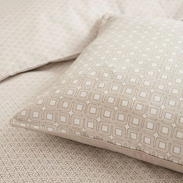 The Bedeck Of Belfast Fine Linens Nikko Single Duvet Cover Set in Linen, features an all over geometric tile print.