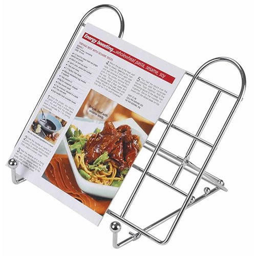 Adjustable chrome plated wire recipe stand which can adjust to three different positions for easy reading whilst cooking from recipes. The stand also folds away for easy storage.